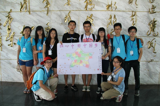 隊員們向游客分發(fā)便利貼,收集他們的中國夢,與便利貼展示板合影。