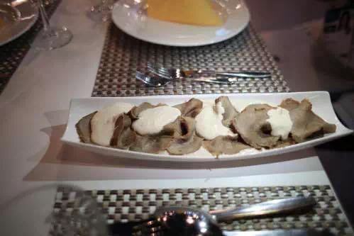 一道好的Carpaccio幾乎要用上一天的時間,因此意大利人一般也只有雙休日才能好好享受這道前菜。作為意大利經(jīng)典的開胃菜,長相普通的Carpaccio讓人感覺出乎意料的鮮美,幾片薄得透明的生肉片最大限度地保留了牛肉的生鮮美味,柔軟綿延。