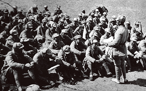 延安整風(fēng)期間我們黨強(qiáng)調(diào),反對主觀主義以整頓學(xué)風(fēng),反對宗派主義以整頓黨風(fēng),反對黨八股以整頓文風(fēng)。圖為整風(fēng)運(yùn)動時,我軍某部連隊(duì)指導(dǎo)員在給戰(zhàn)士們講課。